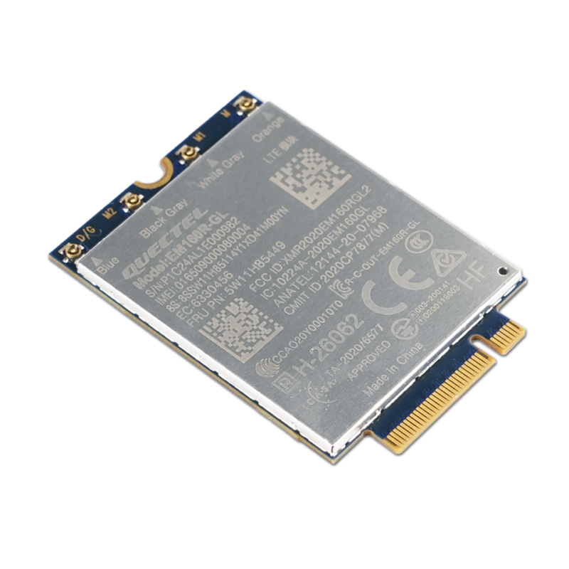 ThinkPad Quectel EM160R-GL 4G LTE-A Cat 16 M.2 WWAN Module for X1 2-in-1 Gen 9/10 and P16s Gen 3/4 is an LTE advanced category 16 module. Adopting the 3GPP Release 14 technology, it delivers speed of 1.0 Gbps downlink and 150 Mbps uplink peak data rates, and is designed in M.2 form factor.