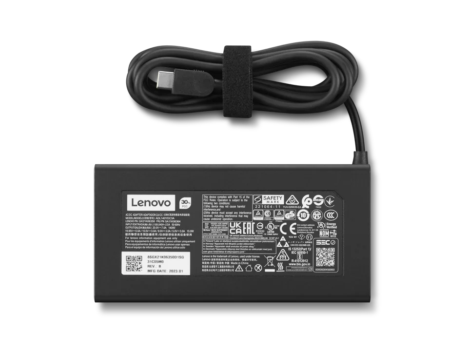 Lenovo Legion Slim 140 W AC Adapter (USB-C) on originaalne toiteadapter, millel on õhuke ja kaasaskantav disain. See on ideaalne asendus- või varutoiteadapter sinu ühilduvale Lenovo Legion või teistele sülearvutitele. Jäta originaalne suurem adapter koju ja võta Lenovo Legion Slim 140 W AC Adapter (USB-C) reisile kaasa.